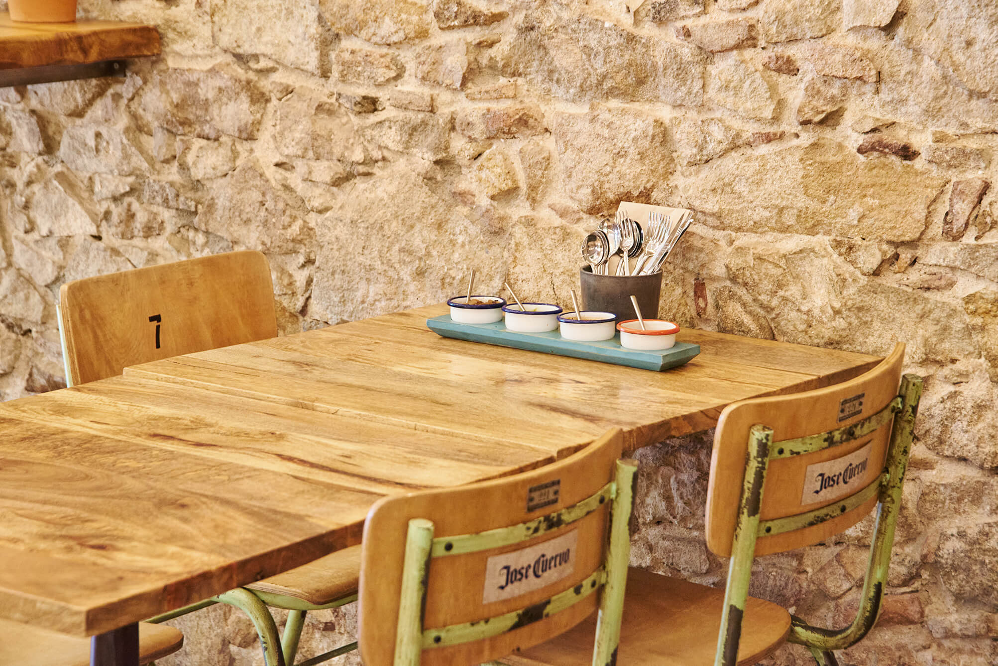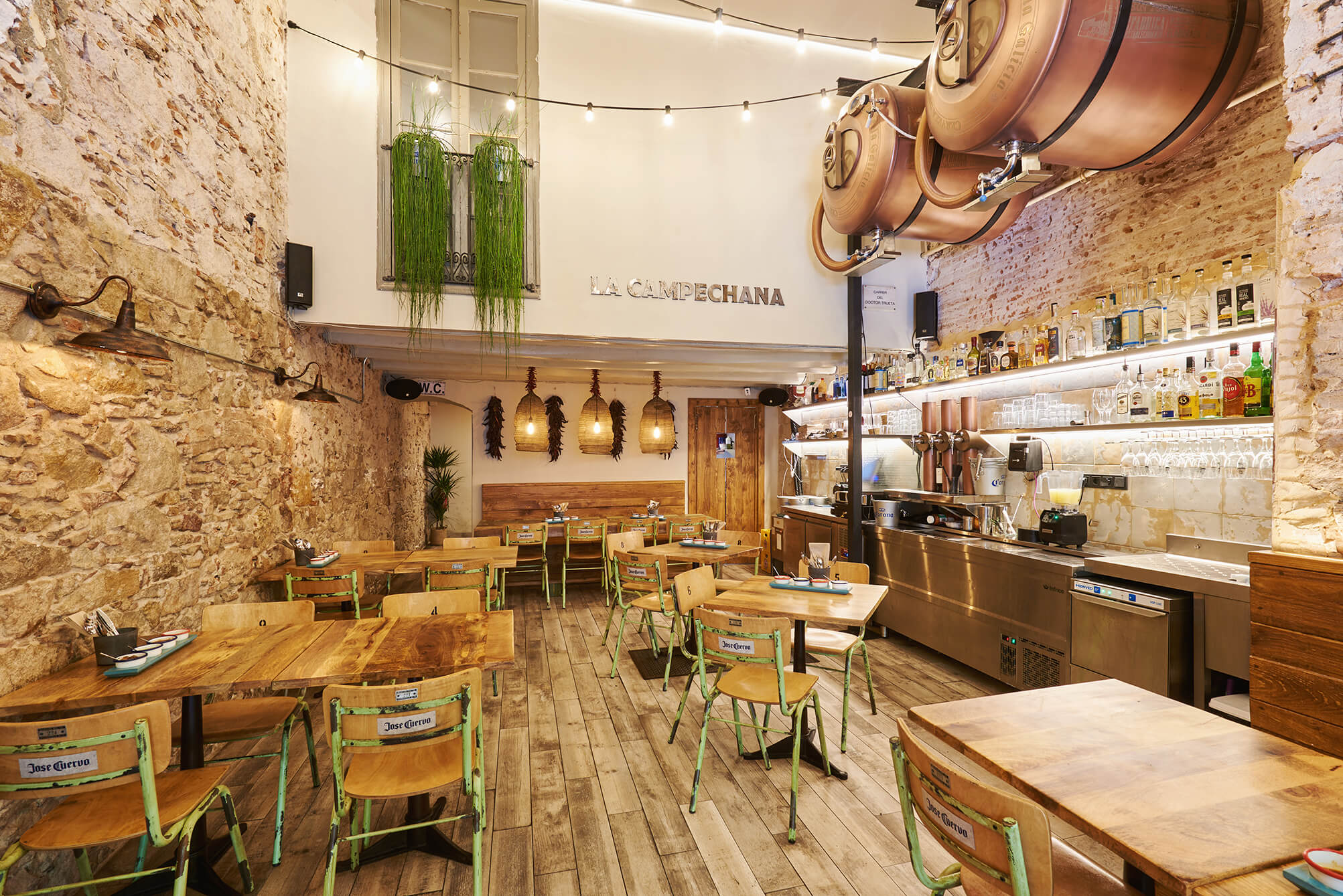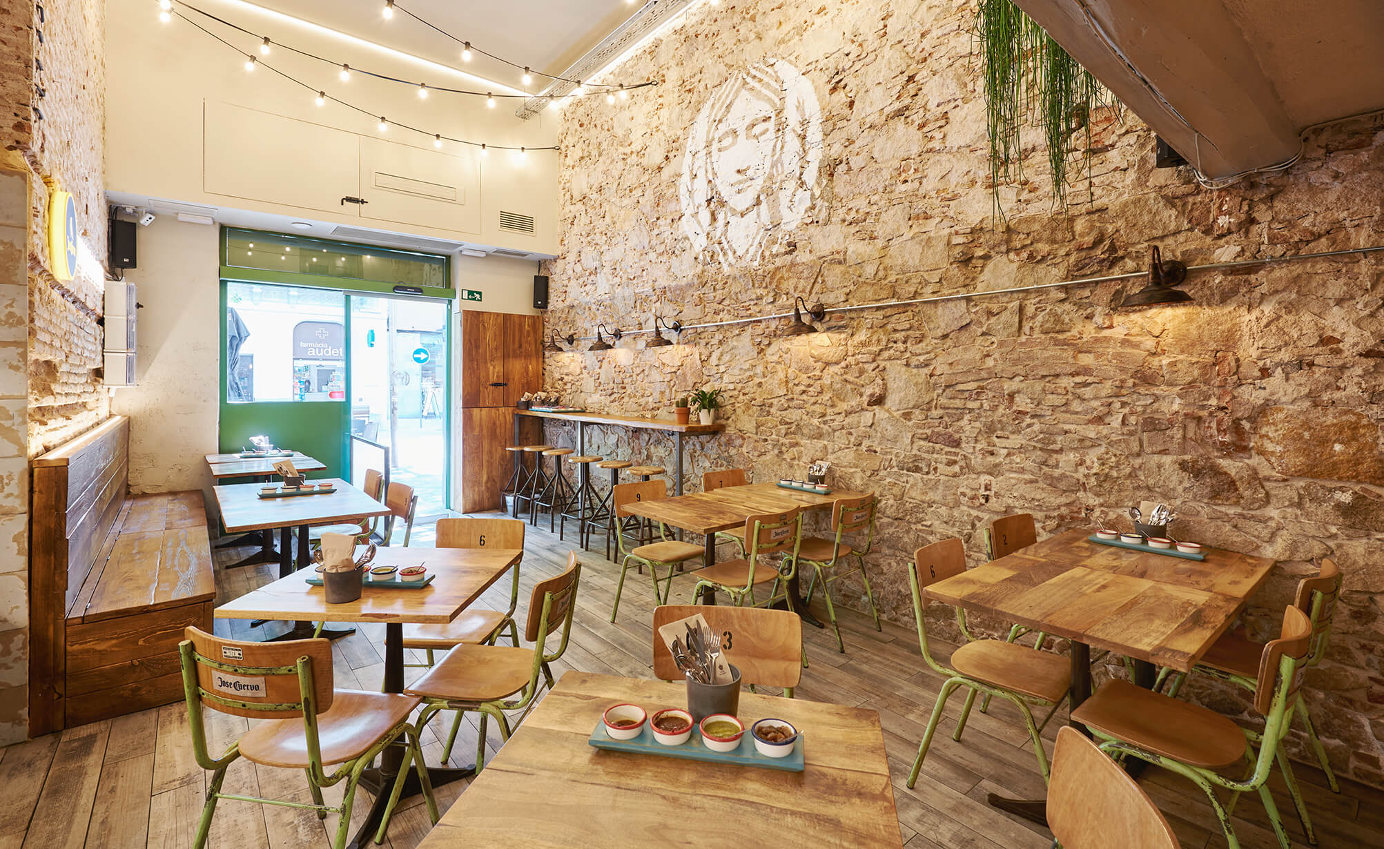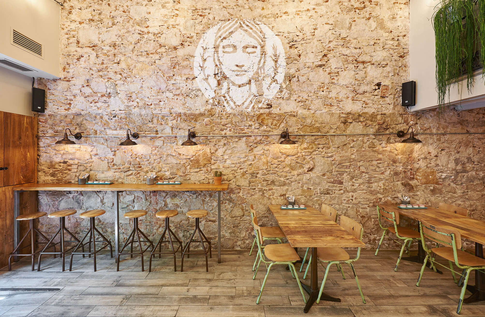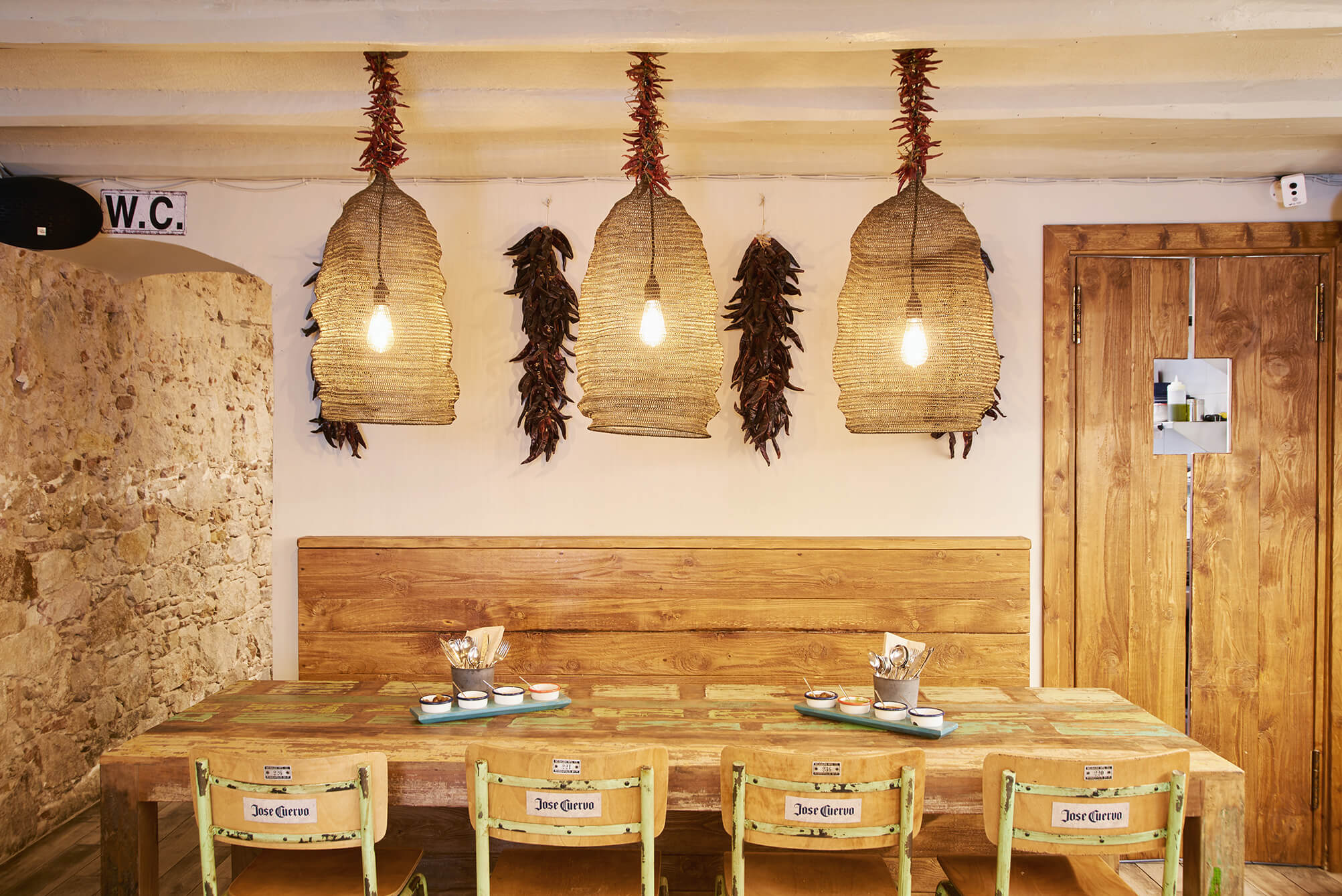 Para este restaurante mexicano se quería recrear la esencia del ambiente de las calles de México, logrando un espacio íntimo y acogedor. Se utiliza una combinación de colores tierra y desérticos y elementos decorativos típicos de la cultura mexicana: azulejos desgastados, paredes de acento con piedra y detalles en madera y hierro forjado.