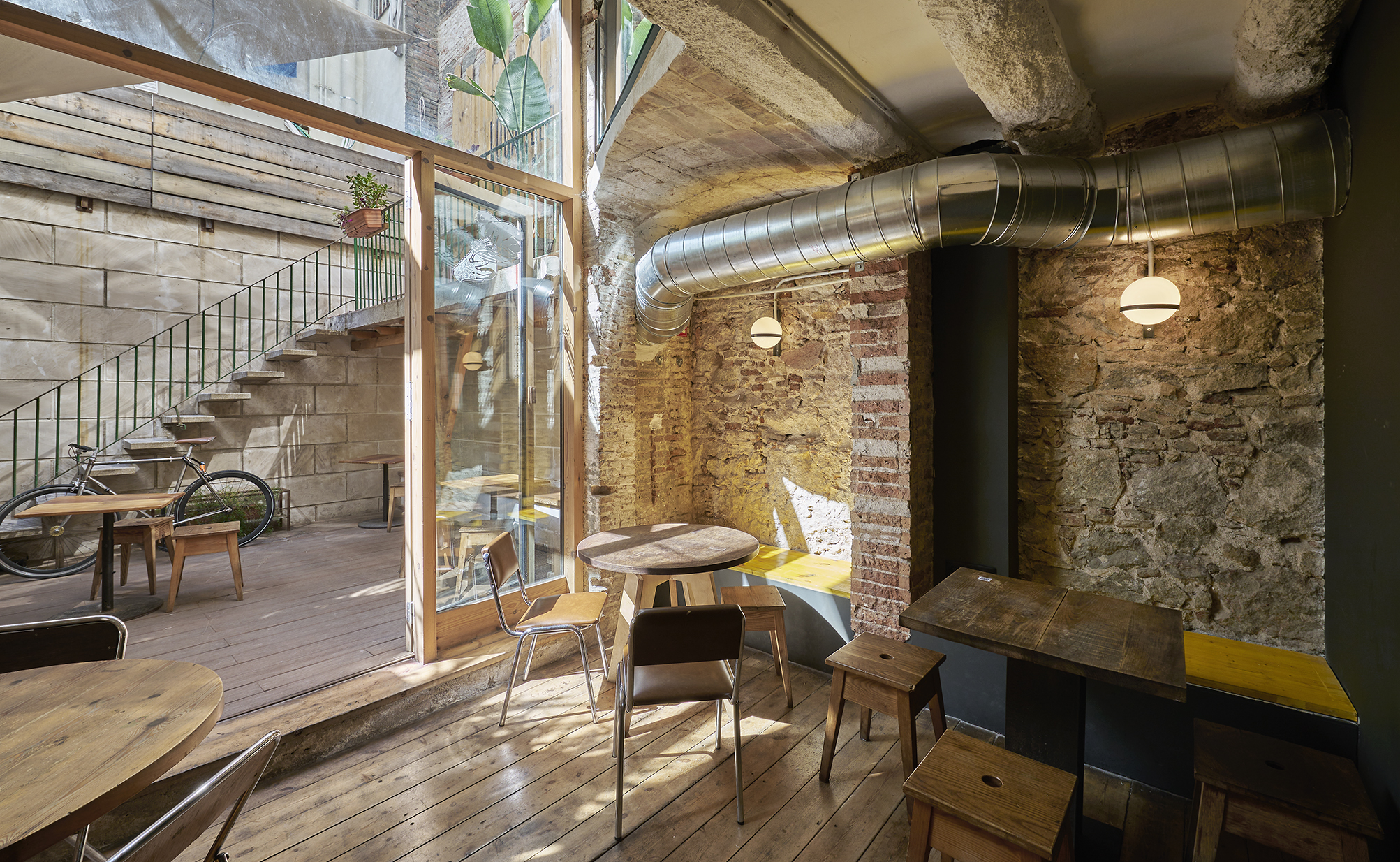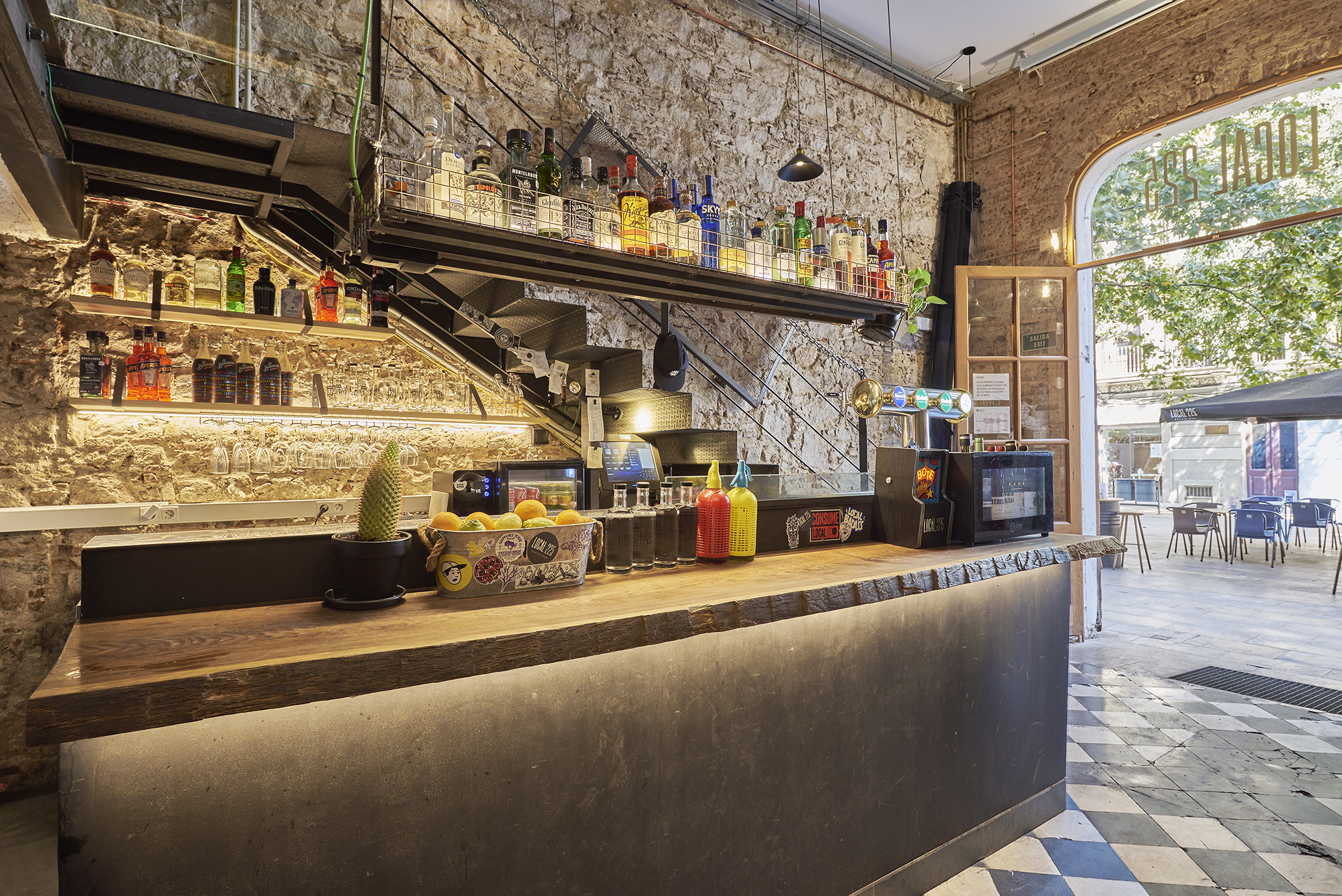 En este bar local en Poblenou, se transformó el espacio para poder recibir a más personas y hacerlo más acogedor, con un look industrial y práctico para el servicio. Se generaron áreas más abiertas y amplias, con mobiliario que optimizara el espacio, la comodidad y la limpieza.