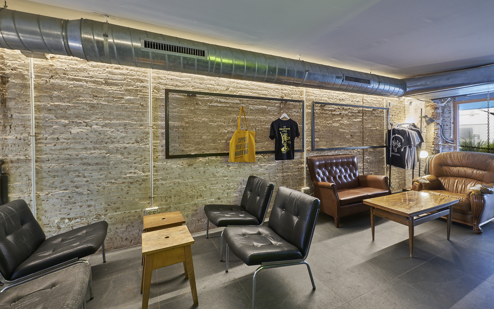 El diseño combina materiales como el ladrillo visto, el metal envejecido y la madera reciclada daba un ambiente grunge. La iluminación juega un papel crucial, con estilo industrial, indirecto y neones vibrantes que aportan un toque contemporáneo y urbano.