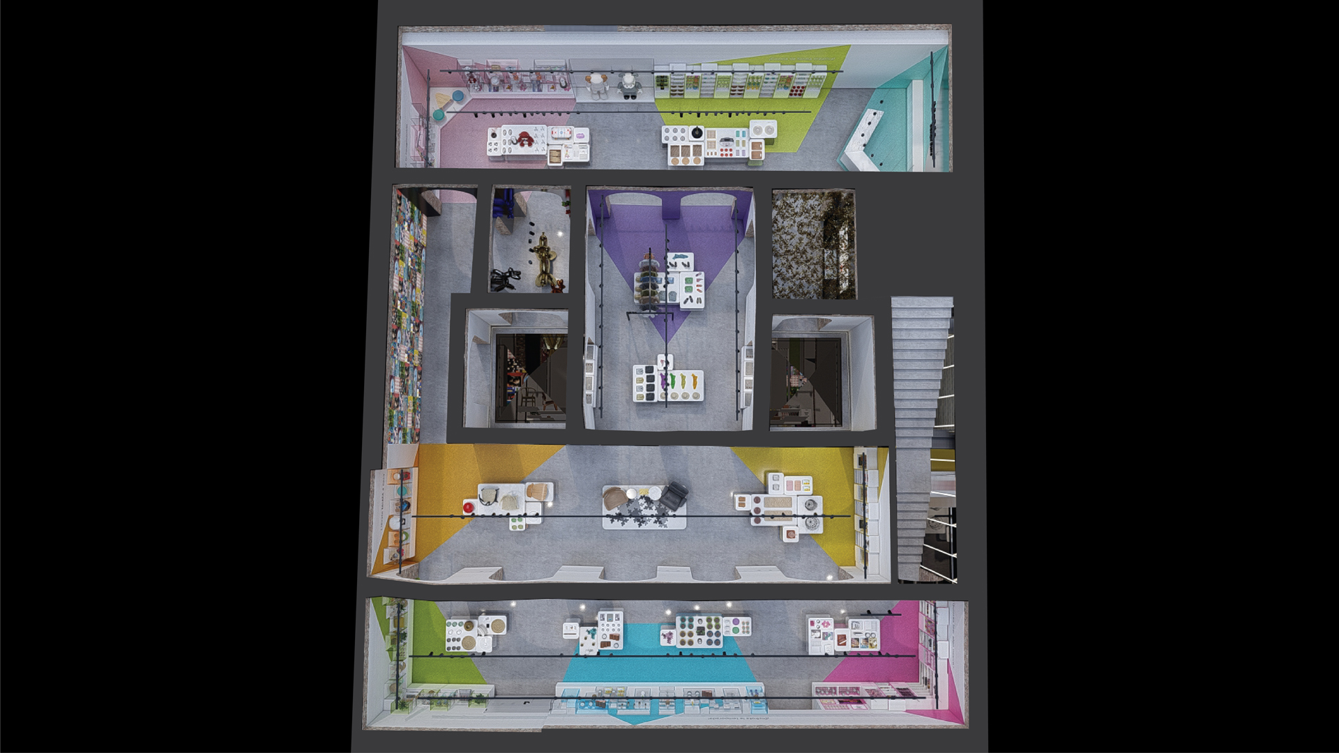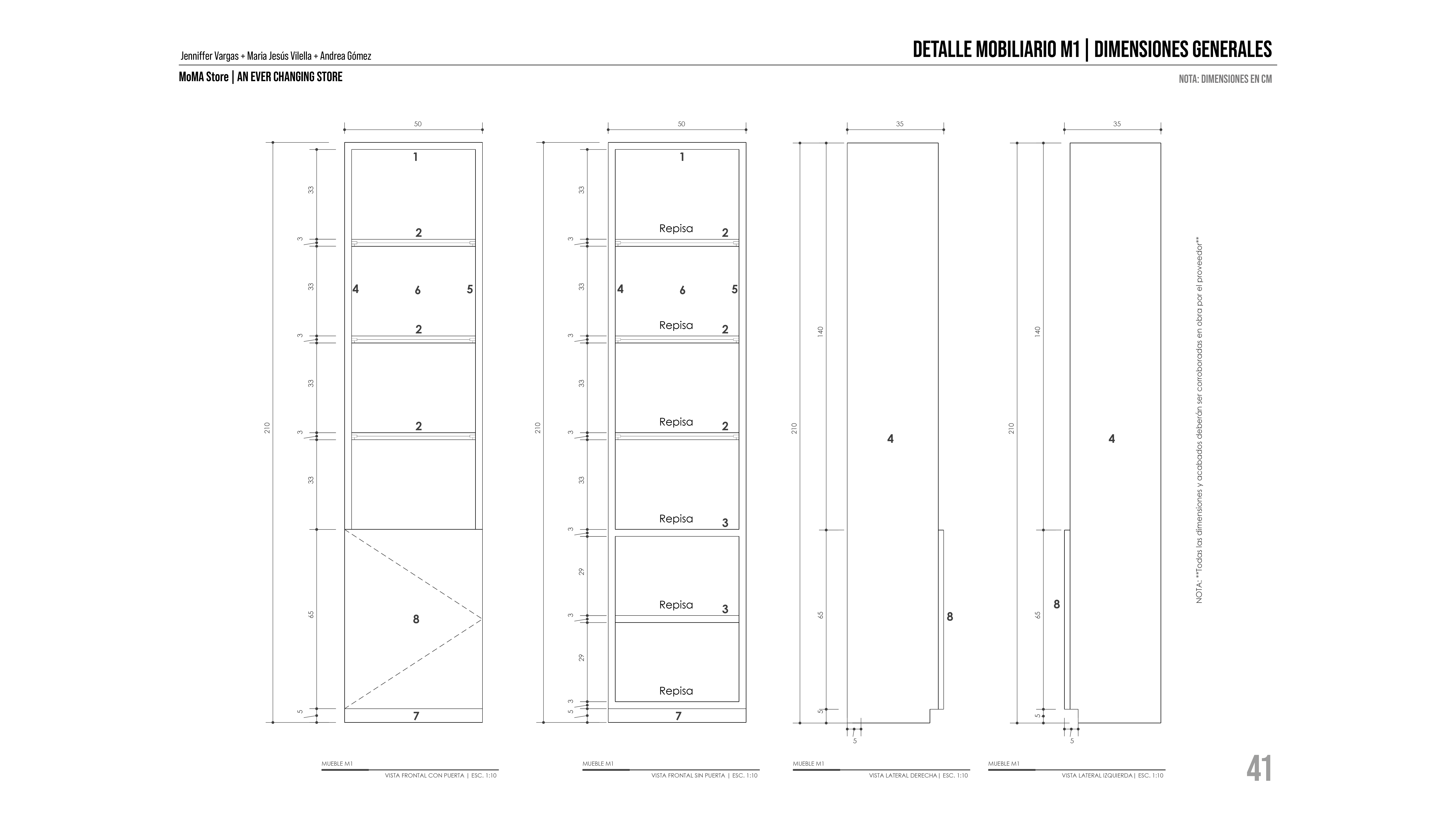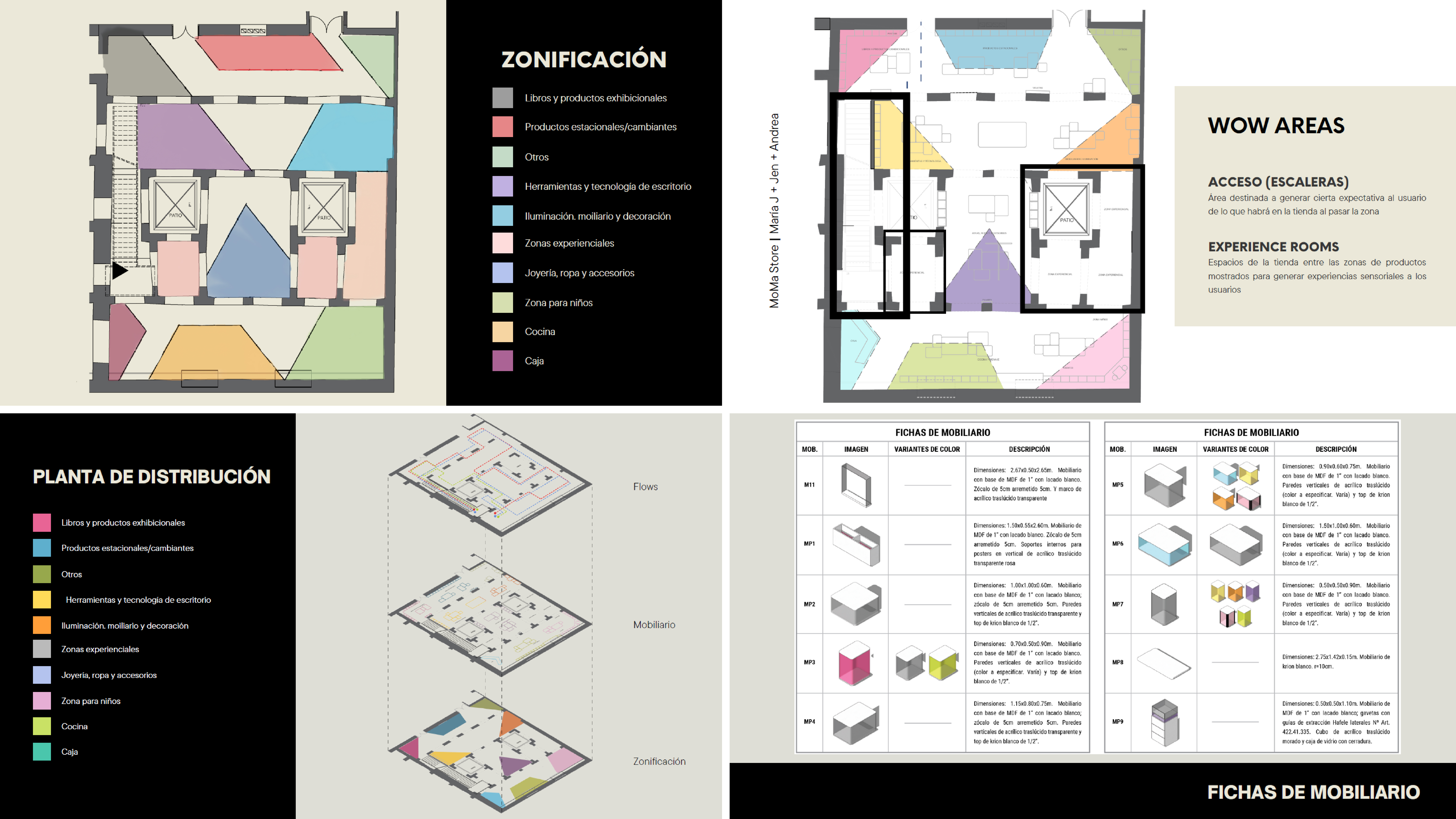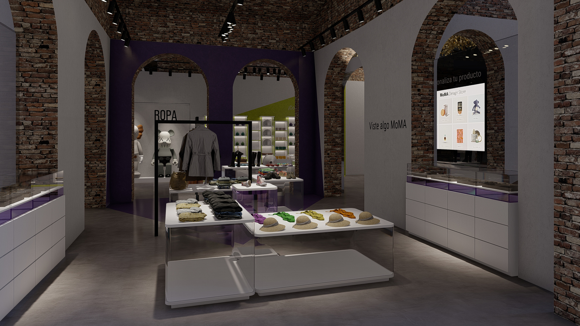 El mobiliario se personaliza de forma modular a manera de que se puedan estar rotando en ubicación cada cierto tiempo según las nuevas colecciones de productos que promocione MoMA para su venta. En adición, cada uno posee iluminación para que cada producto se luzca aún dentro del conjunto.