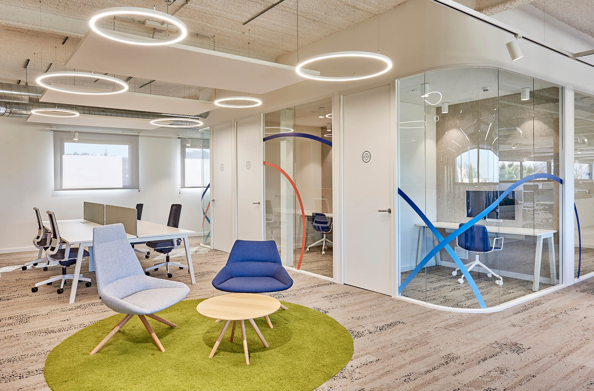 El enfoque principal fue maximizar el uso del espacio disponible e incentivar la colaboración y la creatividad. Con una estética limpia y minimal, se implementa un diseño abierto y luminoso de co-working que promueve la interacción entre los equipos y facilita la comunicación fluida. Además, se han incorporado áreas de descanso y espacios de reunión informales para estimular la productividad en las personas desde un punto de confort.