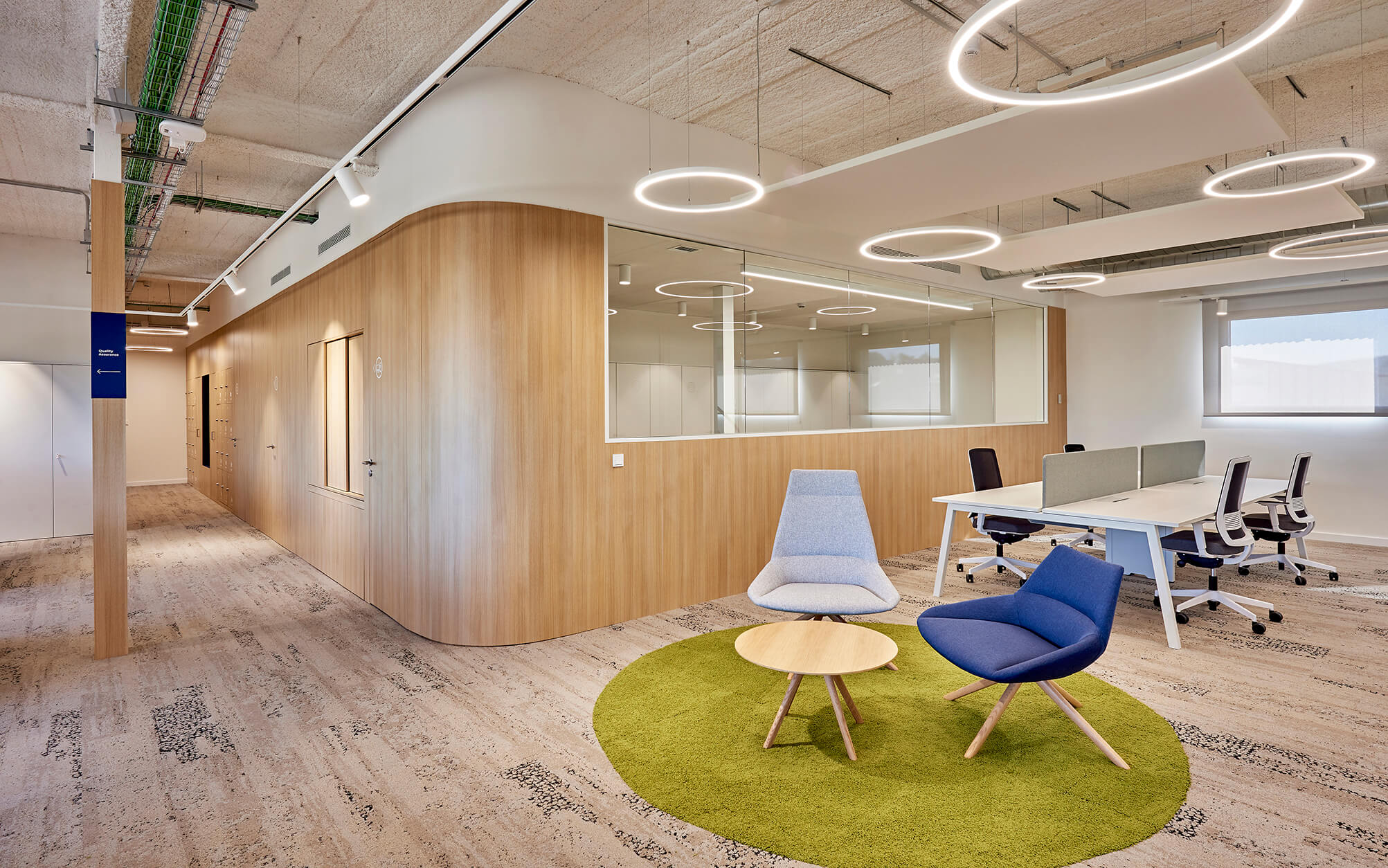 Reforma de oficinas para la creación de un nuevo ambiente de trabajo de trabajo moderno y funcional. Se buscaba que este mostrara la identidad y los valores de la empresa, mientras se adapta a las necesidades de sus empleados, fomentando así su bienestar.