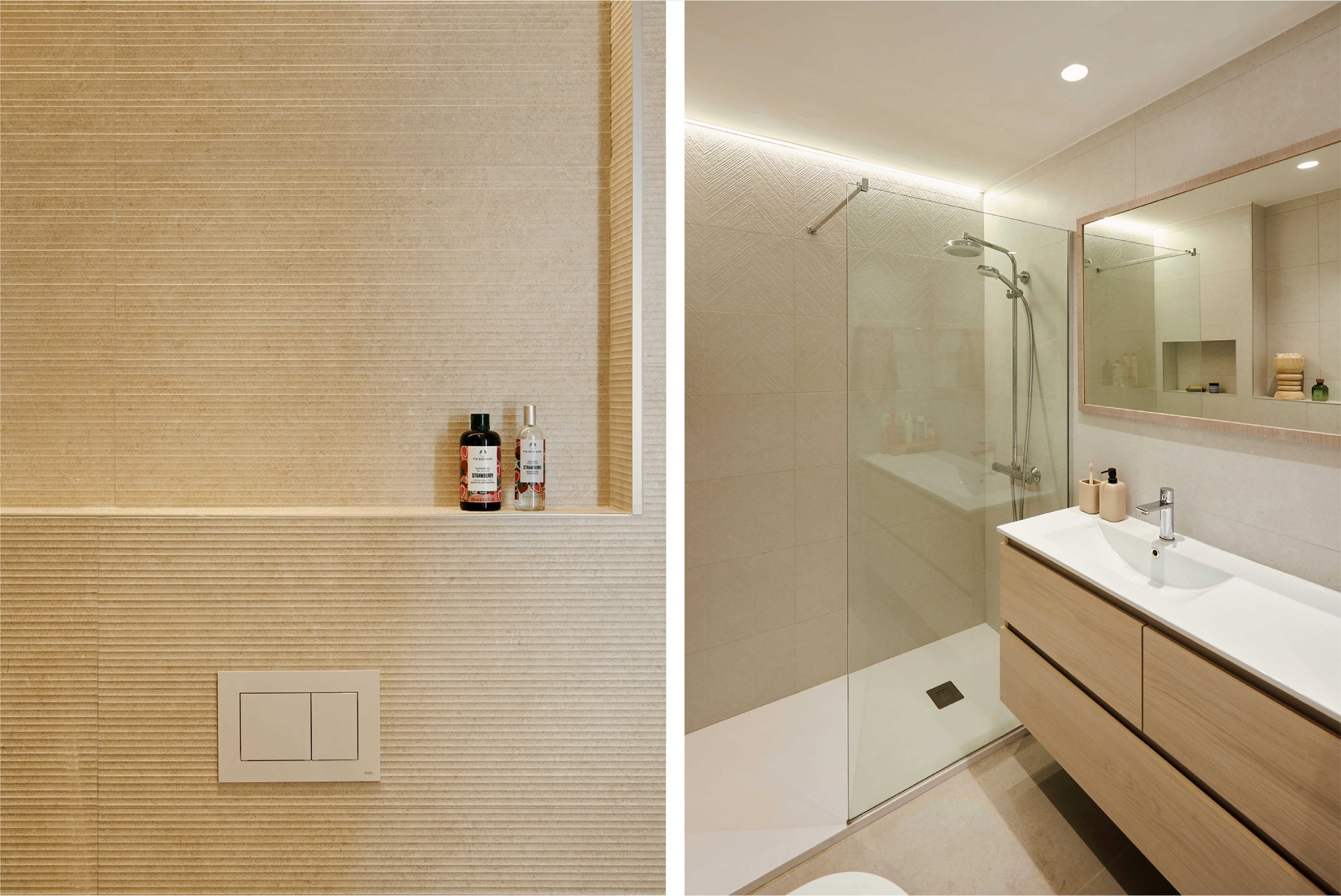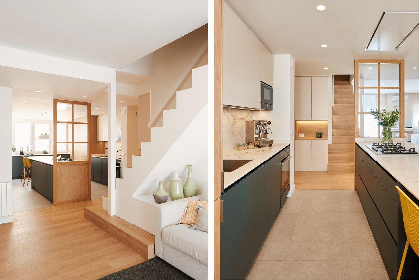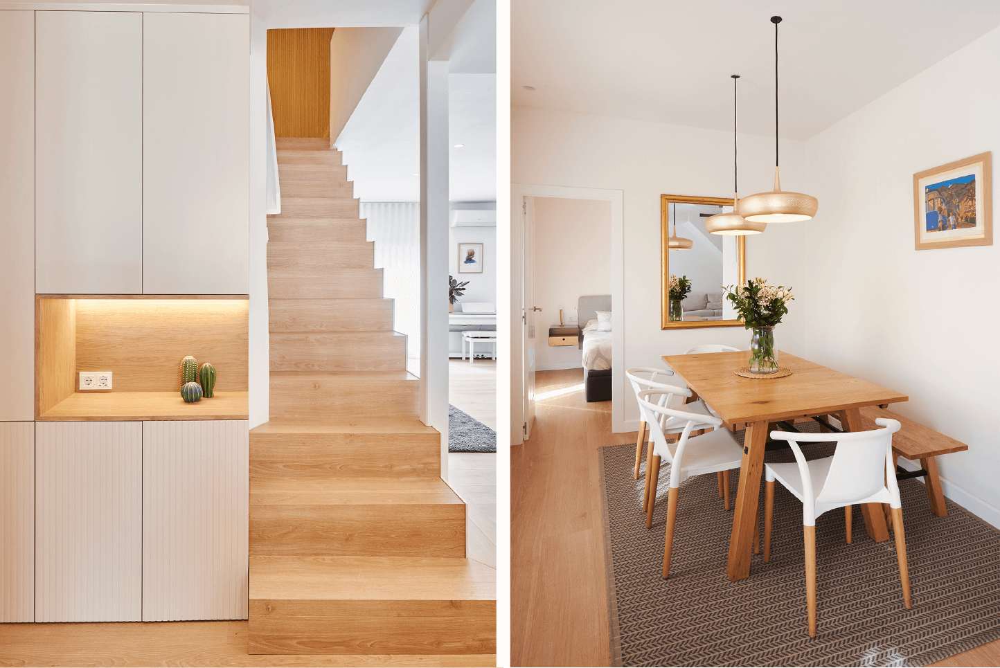 Esta reforma de interiorismo se centra en un diseño moderno que refleja un ambiente acogedor y cálido para una familia de 4 integrantes. Se utilizan colores suaves, proporcionando una sensación tranquila y relajante en todo el espacio. Para crear una sensación de amplitud y apertura, se hizo una distribución abierta que conectara los diferentes espacios del piso.